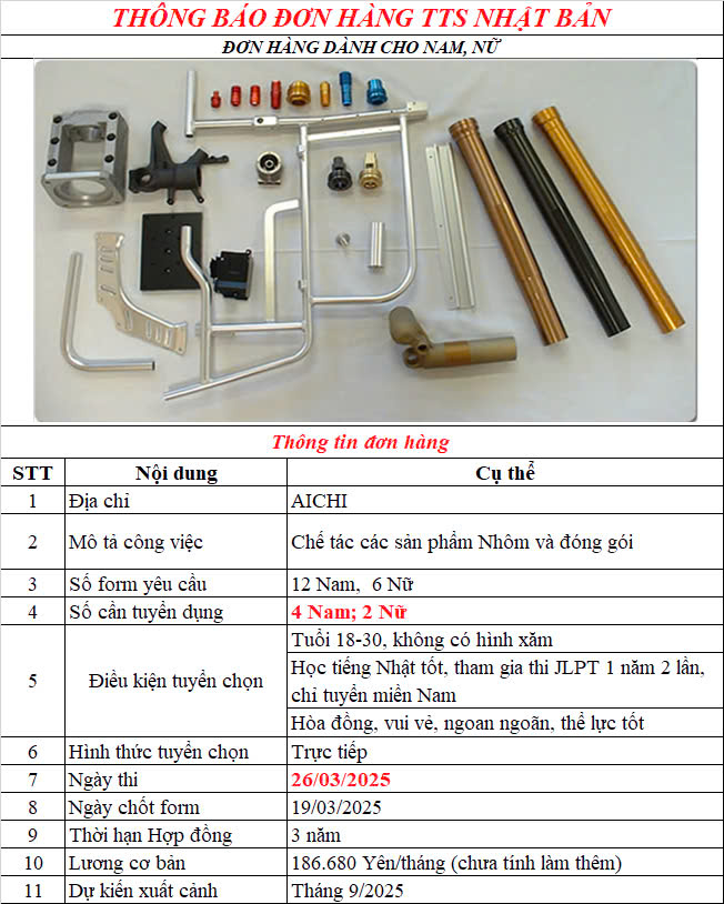 {03.202̀5} TUYỂN NAM, NỮ ĐƠN HÀNG CHẾ TÁC VÀ ĐÓNG GÓI CÁC SẢN PHẨM NHÔM TẠI AICHI