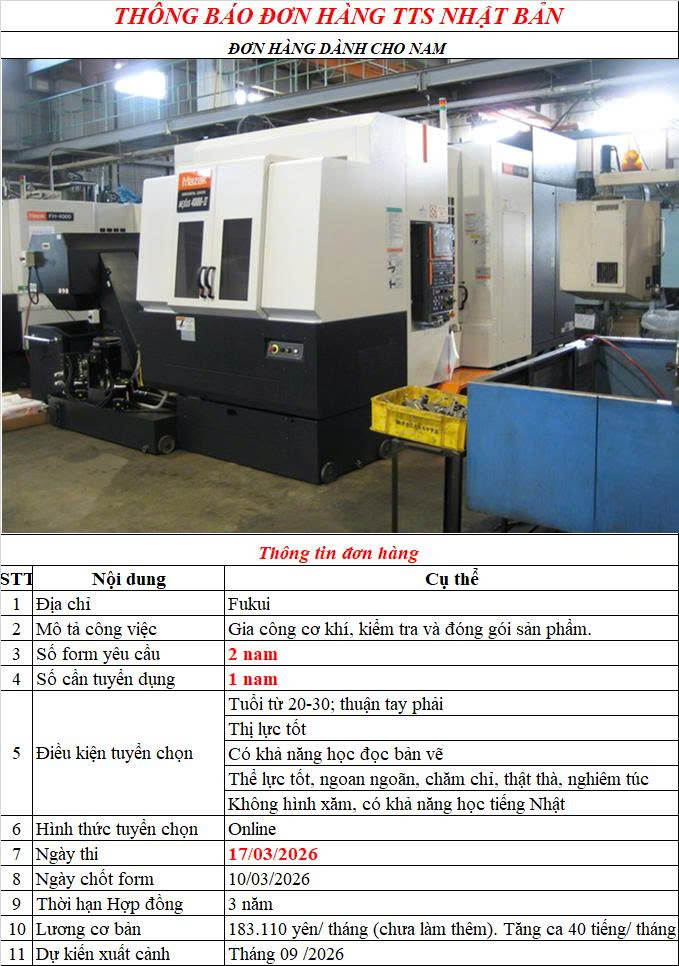 {03.202̀6} TUYỂN 01 NAM GIA CÔNG CƠ KHÍ