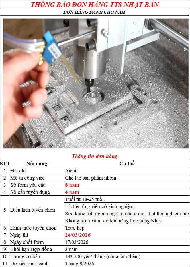 {2.2023} TUYỂN 3 NAM ĐƠN HÀNG PHAY CNC – LÀM VIỆC TẠI NAGANO