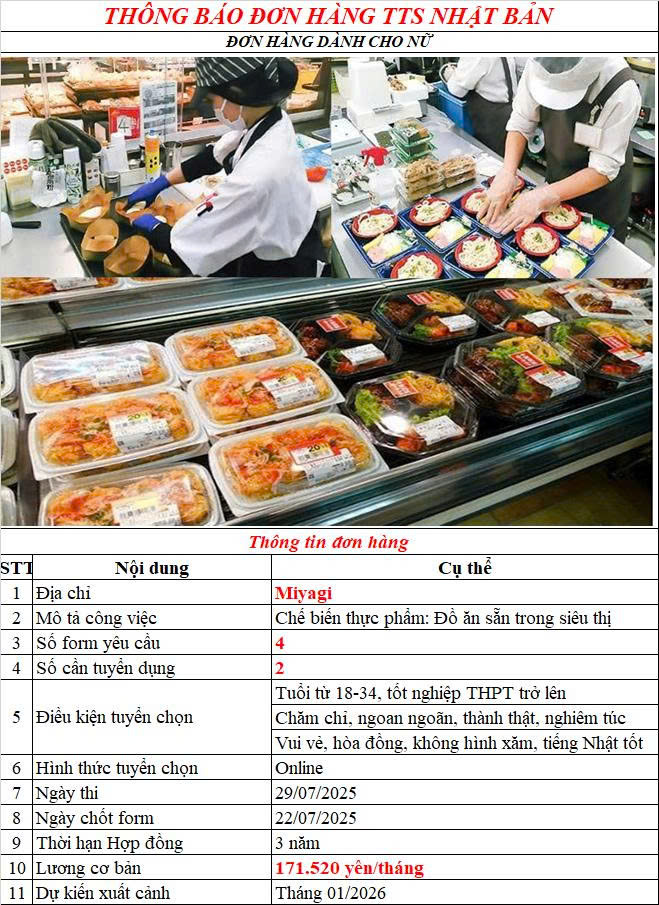{06.202̀5} TUYỂN 2 NỮ ĐƠN HÀNG THỰC PHẨM: CHẾ BIẾN ĐỒ ĂN SẴN TRONG SIÊU THỊ