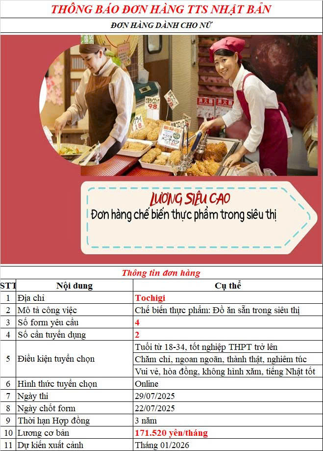 HOT! HOT! HOT! – TUYỂN DỤNG TTS LÀM VIỆC TẠI NHẬT BẢN – LƯƠNG 30 TRIỆU VNĐ/THÁNG
